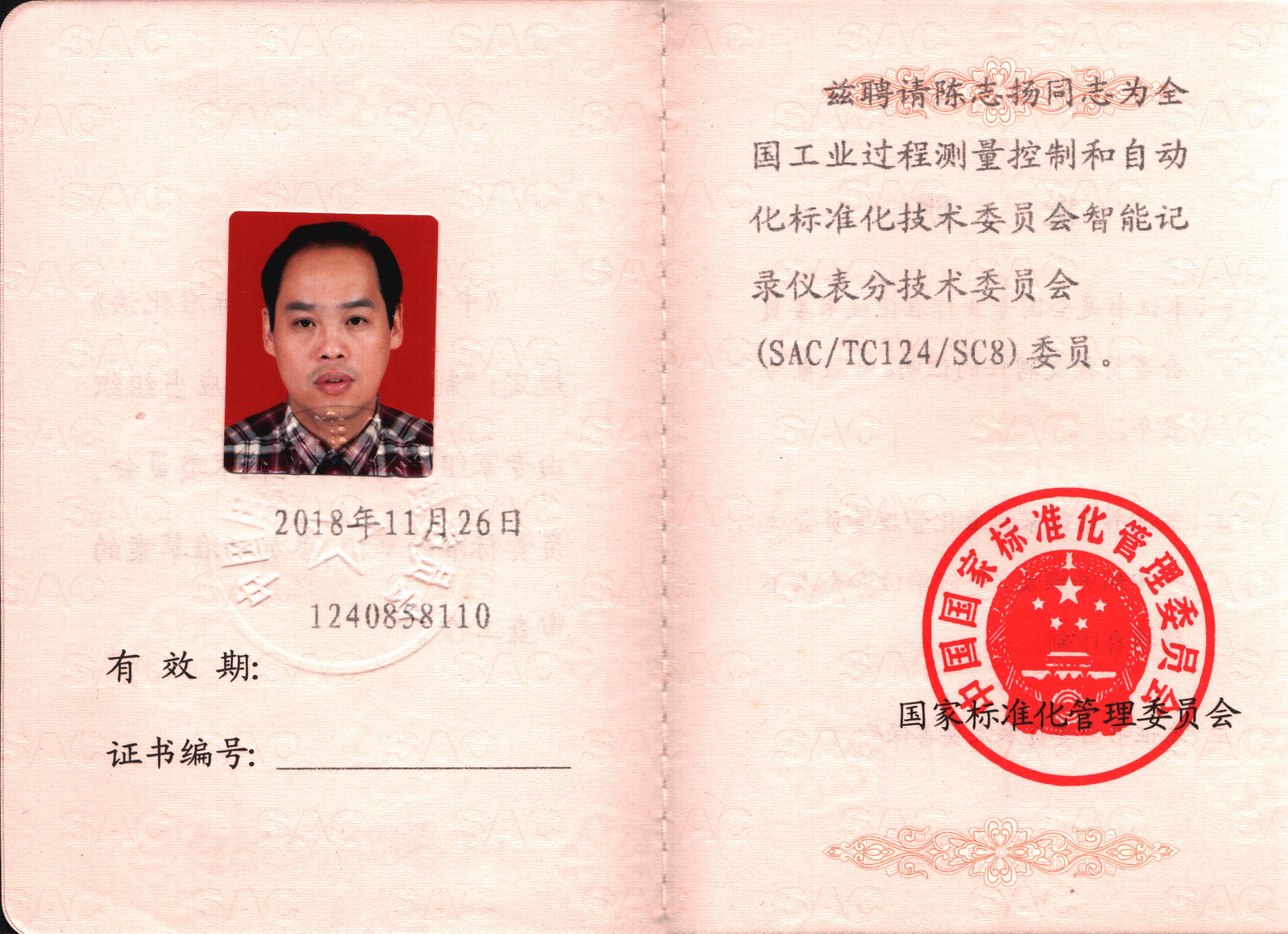 虹潤公司技術副總監陳志揚入選全國工業過程測量和自動化標準化技術委員會智能記錄儀表分技術委員會副主任委員