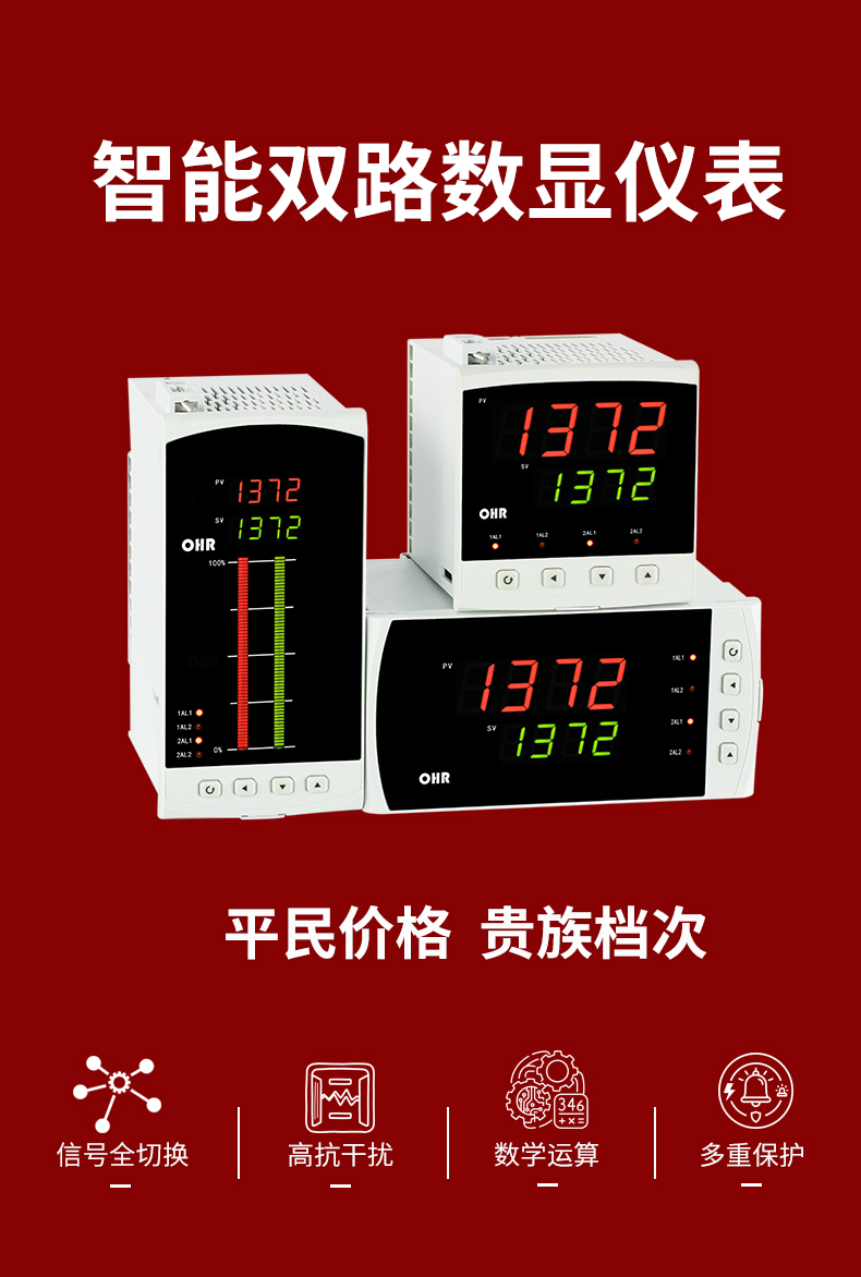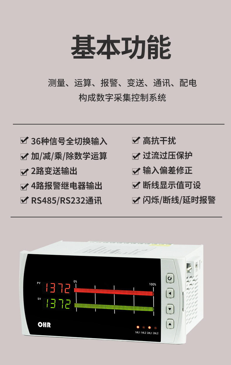 OHR-E200系列雙回路數字顯示控制儀針對現場溫度、壓力、液位、速度等各種信號進行采集、顯示、控制、遠傳、通訊、打印等處理,構成數字采集系統及控制系統,廣泛運用于電力、石化、冶金、輕工、制藥、航空等諸多領域。