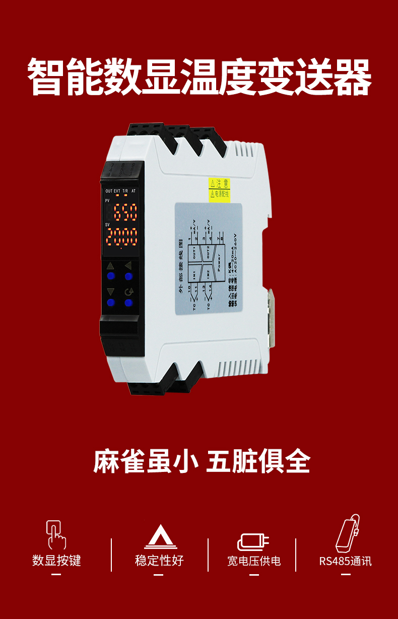 虹潤(rùn)公司是專業(yè)生產(chǎn)溫度變送器的國(guó)家專精特新“小巨人”企業(yè)。生產(chǎn)的智能數(shù)顯溫度變送器,具有高清顯示單元,溫度傳感器類型及量程可設(shè)置,寬范圍電源供電,高抗干擾,帶RS485通訊等特點(diǎn)。產(chǎn)品獲得具備減震抗干擾能力的溫度變送器、信號(hào)隔離器、一種二端子模塊、無(wú)源信號(hào)隔離器等4項(xiàng)國(guó)家發(fā)明專利,主持起草物聯(lián)網(wǎng)智能溫度儀表、現(xiàn)場(chǎng)設(shè)備工具(FDT)接口規(guī)范、工業(yè)過(guò)程控制系統(tǒng)用模擬輸入兩位或多位輸出儀表、工業(yè)過(guò)程測(cè)量和控制系統(tǒng)用溫度變送器等4項(xiàng)國(guó)家標(biāo)準(zhǔn),參與國(guó)際5G標(biāo)準(zhǔn)制定,取得智能數(shù)顯溫度變送器等2項(xiàng)相關(guān)軟件著作權(quán)。產(chǎn)品廣泛應(yīng)用于電力、化工,冶金、制藥、機(jī)械制造、樓宇自控等工業(yè)領(lǐng)域現(xiàn)場(chǎng)自動(dòng)化測(cè)溫過(guò)程。