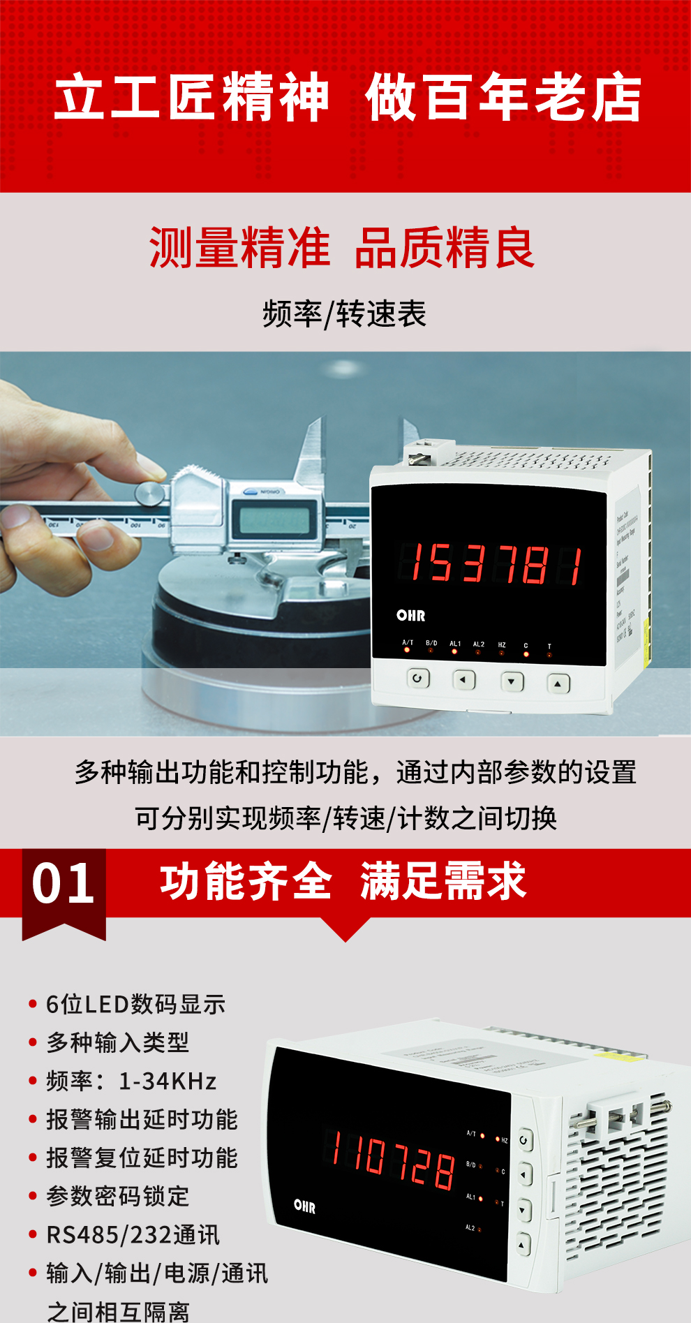 OHR-B400系列頻率/轉速表采用全自動貼片封裝工藝,具有很強的抗干擾能力,并具有多種輸出功能和控制功能,與多種轉速傳感器配套,廣泛運用于電力、石化、冶金、輕工、制藥、航空等諸多領域。