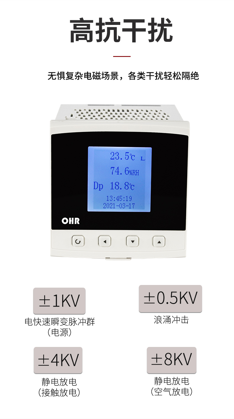OHR-WS10系列溫濕度控制儀以先進的32位ARM處理器為核心,采用進口高性能溫濕度傳感器,可同時對被測環境的溫度、濕度進行測量和控制,并可通過溫、濕度計算出露點。它具有精度高、穩定性強、響應速度快等特點,適用于通訊機房、辦公室、醫院、檔案館、博物館、賓館、樓宇自控等場所的溫濕度測量。