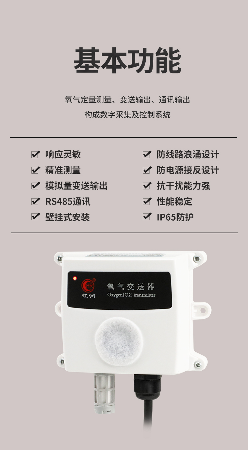 虹潤公司是專業生產環境監測儀表的國家專精特新“小巨人”企業。生產的氧氣變送器,具有采用電化學原理,響應靈敏,準確度高,低功耗,模擬量變送輸出或RS485通訊等特點。產品獲得一種農業監控變送器、一種儀表電源等2項實用新型專利,主持起草現場設備工具(FDT)接口規范、物聯網總體技術智能傳感器特性與分類等2項國家標準,參與國際5G標準制定,取得農業監控變送器等3項相關軟件著作權。產品廣泛應用于機房、配電站、地下車庫、工廠倉庫、食品儲存、養殖場、果蔬林園等環境場合對氧氣濃度的檢測。