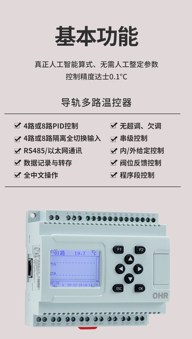 虹潤公司是專業(yè)生產(chǎn)溫控器的國家專精特新“小巨人”企業(yè)。生產(chǎn)的導軌多路溫控器,具有4路或8路PID控制,真正人工智能算式,無需人工整定參數(shù),控制精度達士0.1°C,數(shù)據(jù)記錄與轉存等特點。產(chǎn)品獲得智能化控制器、人工智能調節(jié)器及調節(jié)方法、模糊PID控制儀及控制方法、一種平板無紙記錄儀、巡回檢測顯示方法及裝置等5項國家發(fā)明專利,主持起草物聯(lián)網(wǎng)智能記錄儀表、物聯(lián)網(wǎng)智能溫度儀表、工業(yè)過程測量和控制系統(tǒng)用智能調節(jié)器等3項國家標準,參與國際5G標準制定,取得液晶溫控器儀表等3項相關軟件著作權。產(chǎn)品廣泛應用于電石化、工業(yè)爐、試驗設備、注塑機械、包裝機械等需要對現(xiàn)場溫度進行監(jiān)測控制的行業(yè)。